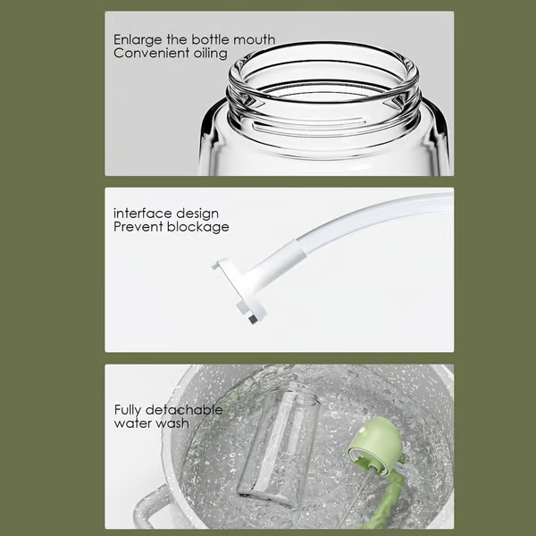 - 🌷Efficient Oil Control: A simple thumb press on the pump produces 0.2 ml of spray at a time, allowing you to evenly cover your food and pot, thereby controlling the amount of oil used during cooking efficiently.